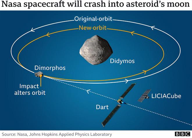 而对于变轨则仍然在试验阶段,比如NASA的DART也是正在实施中的小行星轨道改变实验,预计将在2022年9月26日至2022年10月2日之间的某个时间撞击“Dimorphos”小行星,之后将会有一个长期的追踪小行星轨迹,看看是否有改变成功。