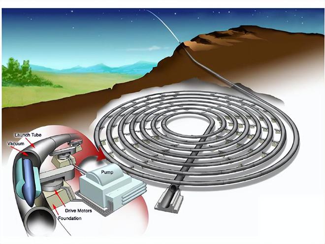 不过它还有另一种延伸版,即利用巨型环形轨道加速来实现载人发射,比如用一个几十千米甚至上百千米长的电磁弹射轨道,出口位于8000米以上的高空,比如在青藏高原上建立一个发射台,可以大幅度减少发射的燃料消耗。