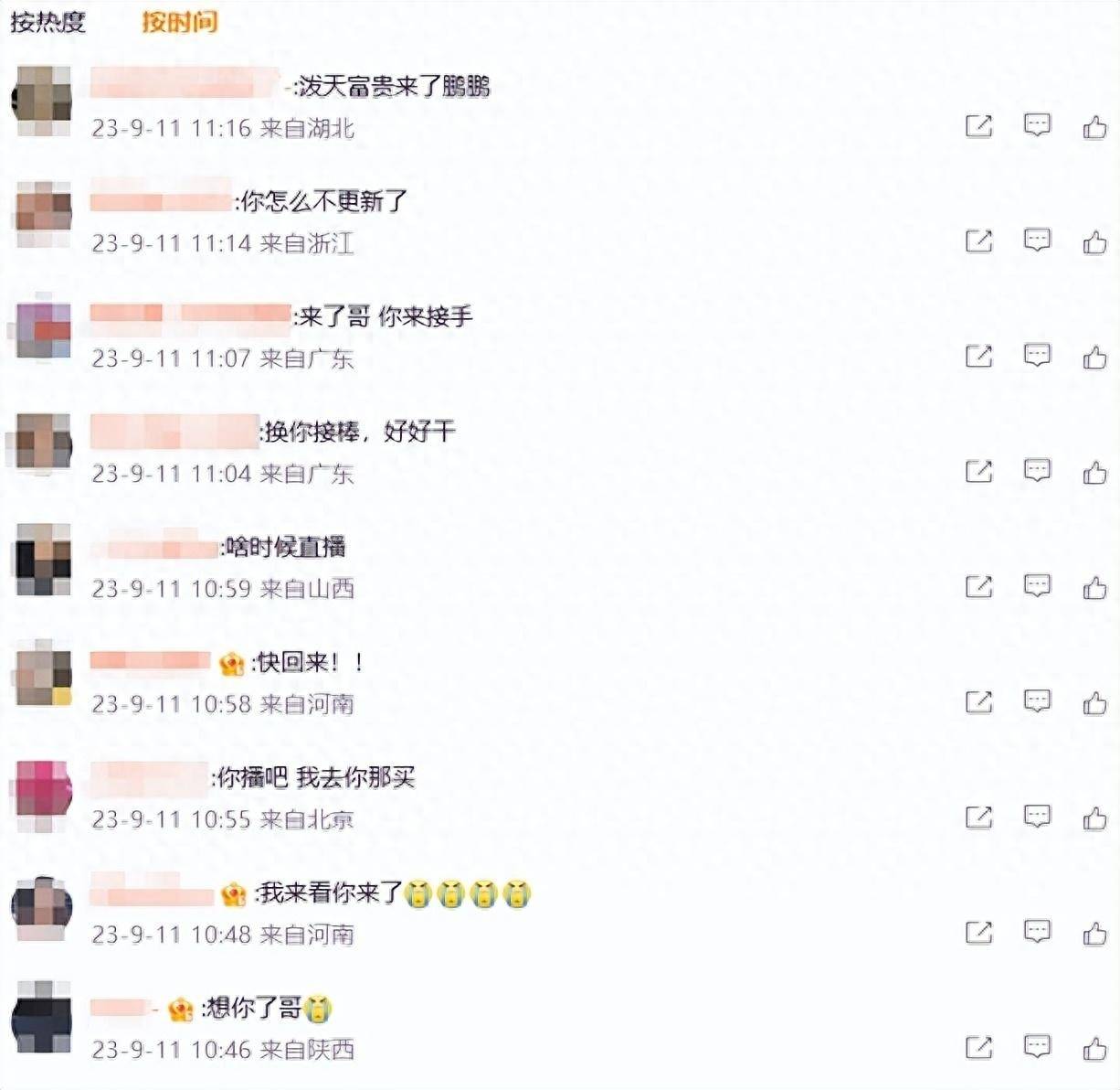 众多网友在付鹏的最新微博评论区刷屏:“泼天富贵来了鹏鹏!你播吧,我去你那买。”