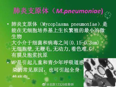 肺炎支原体感染患儿的临床表现差异较大:轻者可不发病,或仅表现为上呼吸道感染;重者可致肺炎、肺实变、胸腔积液等。该病以发热、咳嗽为主要临床表现,可伴有头痛、流涕、咽痛、耳痛等,持续高热提示病情可能较重。部分患儿有喘息表现,以婴幼儿多见。