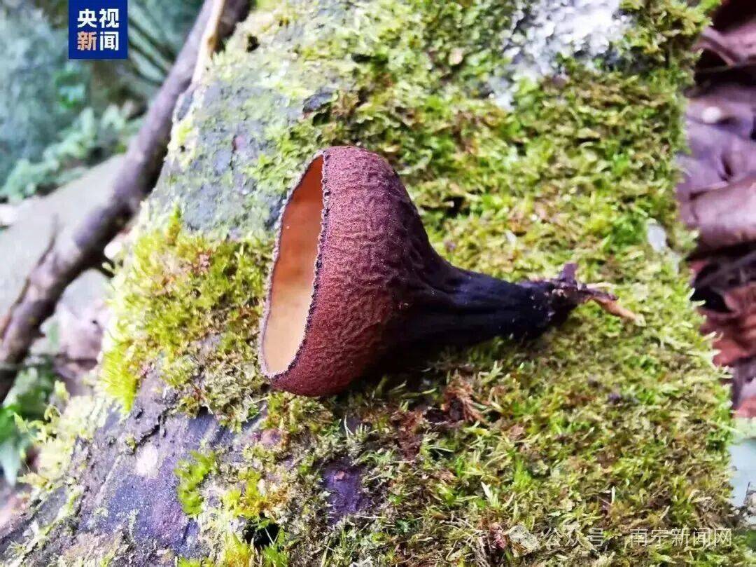 近日,广西大明山国家级自然保护区在野外调查中取得一项重要成果——护林员在野外考察中发现一种形态特殊的子囊菌,经广西植物研究所专家鉴定,确认为肉盘菌科真菌一新种,命名为大明山暗盘菌(Plectania damingshanensis G. F. Mou J. R. Liu)。该成果已于2025年8月21日发表在国际真菌学期刊MycoKeys上。